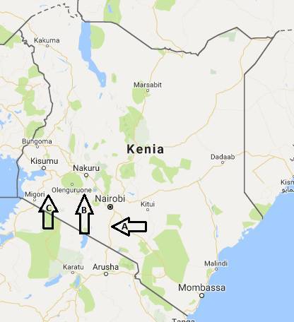 Pijl B wijst ongeveer Sakutiek aan. Dit is de belangrijkste lokatie van de reis.