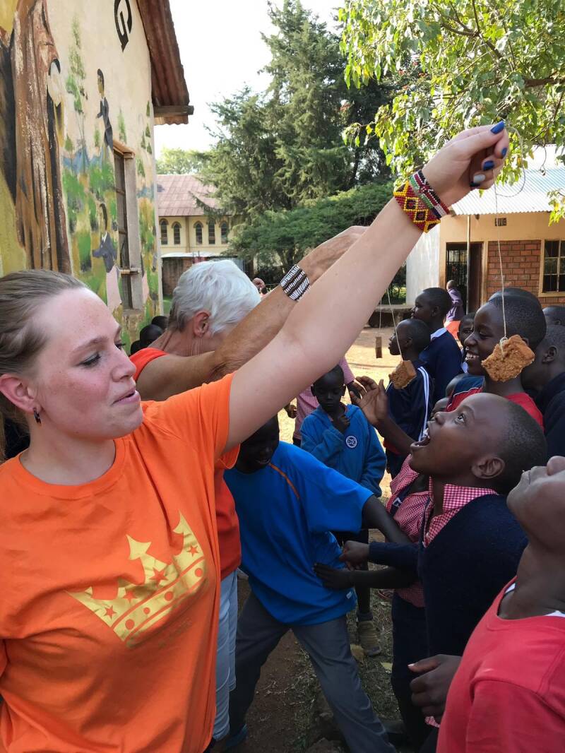 Na een korte nacht stonden wij fris en fruitig bij de ontmoetingsplek voor het klooster te wachten op ons vervoer dat precies op tijd kwam (voor Keniaanse begrippen). Het was nog een hele kunst om alle koffers in vier auto’s te proppen. Het was vergelijkbaar met Tetris. Voor het ontbijt hebben we ons gemanoeuvreerd naar een ander, zeer indrukwekkend uitziend klooster. Daar hebben we onze maagjes gevuld met heerlijke: broodjes (al dan niet getoast), gebakken eieren, worstjes, warme en koude melk, cornflakes, jam en vers fruit. Er was zelfs koffie! Toen iemand daarachter kwam, stormde de halve groep als een malle op de koffie af. De koffie was binnen no-time op. Toen iedereen zijn ontbijt zo goed als op had, kwam Frouke binnenlopen. Frouke moest nog even bij de slaapplaats blijven wachten, omdat er geen ruimte meer was in de auto’s.
